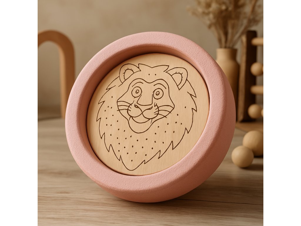Objevte kouzlo Montessori pomůcky, která rozvíjí jemnou motoriku, kreativitu a trpělivost dětí! Tato vkládací dřevěná deska je navržena jako hlava lva, do které si děti mohou provlékáním barevných provázků vytvořit vlastní hřívu.